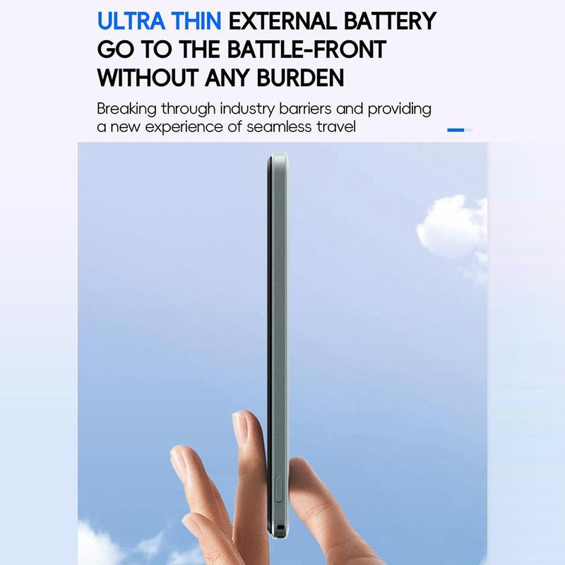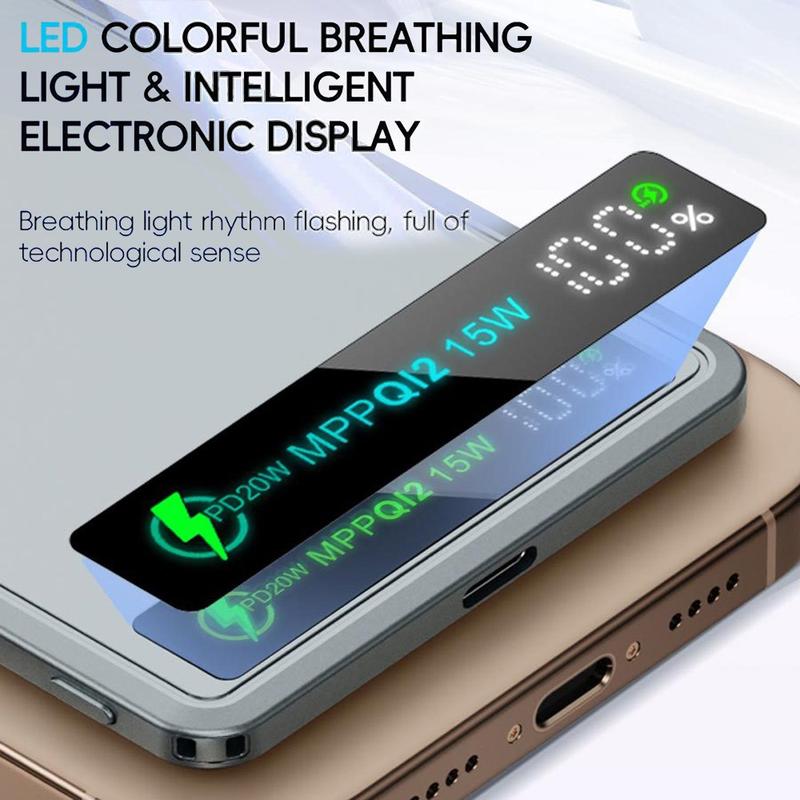 Un écran numérique clair affiche le niveau de batterie restant, vous permettant de surveiller l'autonomie disponible avec plus de précision que les voyants lumineux standard. Le boîtier combine un alliage d'aluminium et du plastique pour une finition élégante et durable, conférant à la batterie externe un aspect haut de gamme tout en la gardant légère et portable. Son design ultra-fin facilite son rangement et son transport sans encombrement.