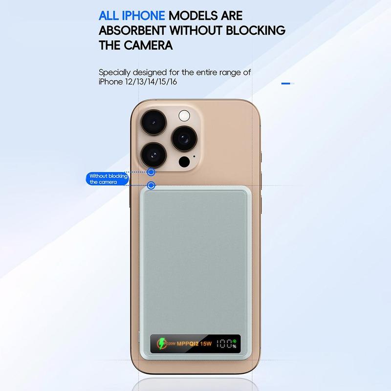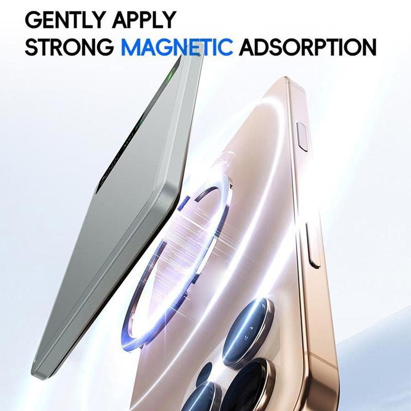 La batterie externe magnétique F16 10000mAh est un chargeur portable élégant et pratique, conçu pour les utilisateurs qui recherchent une recharge rapide et pratique pour les modèles d'iPhone, les AirPods et l'Apple Watch compatibles. Avec son profil fin de 13,8 mm, sa fixation magnétique et sa finition élégante, elle se glisse facilement dans un sac, une poche ou une trousse de voyage. Ce design compact en fait un excellent compagnon de recharge au quotidien, que ce soit pour les trajets quotidiens, les voyages, le travail ou simplement comme source d'alimentation de secours.