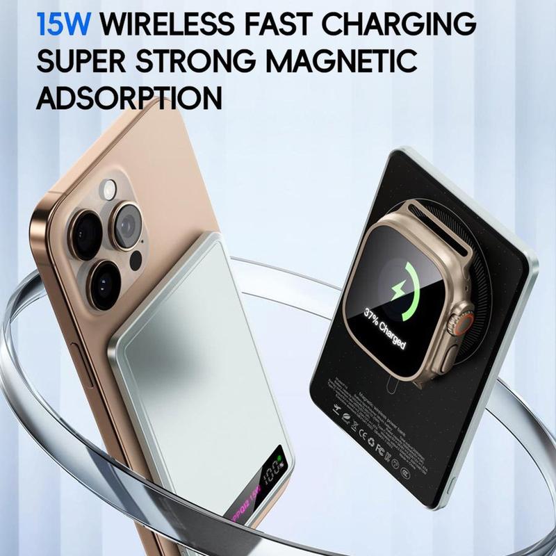 • Batterie externe F16 ultra-fine de 10000mAh avec recharge magnétique, recharge sans fil 15 W, port USB-C PD 20 W et écran numérique - Compatible MagSafe - iPhone, AirPods et Apple Watch