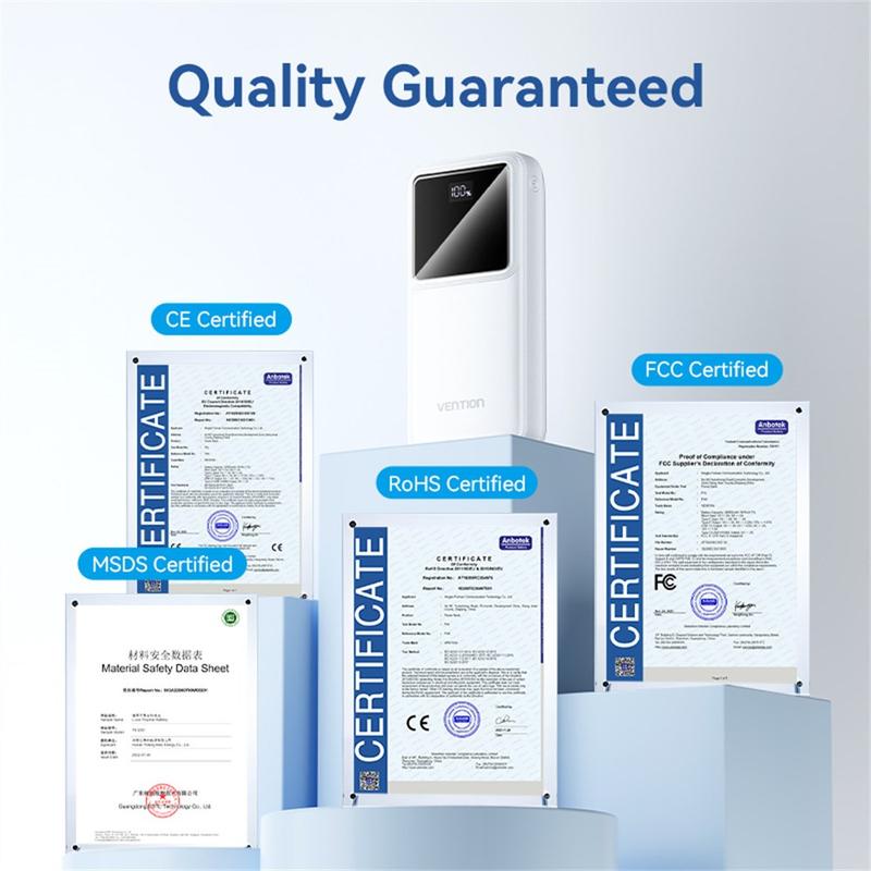 La batterie externe VENTION FHL Series 20000 mAh est un excellent choix pour tous ceux qui ont besoin d'une alimentation de secours fiable, avec une recharge rapide et des options de ports flexibles. Elle combine une grande capacité, une portabilité pratique au quotidien, un affichage clair de l'état de la batterie et une large compatibilité de recharge en un seul appareil. Cela en fait un choix idéal pour les voyages, le travail, les trajets quotidiens et l'utilisation générale au quotidien.