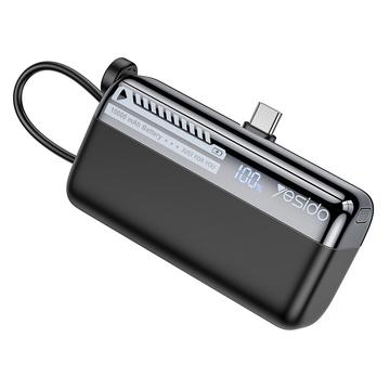 Batterie externe Yesido YP99 de 10000mAh avec recharge rapide de 22,5 W, câble USB-C vers Lightning intégré et écran numérique