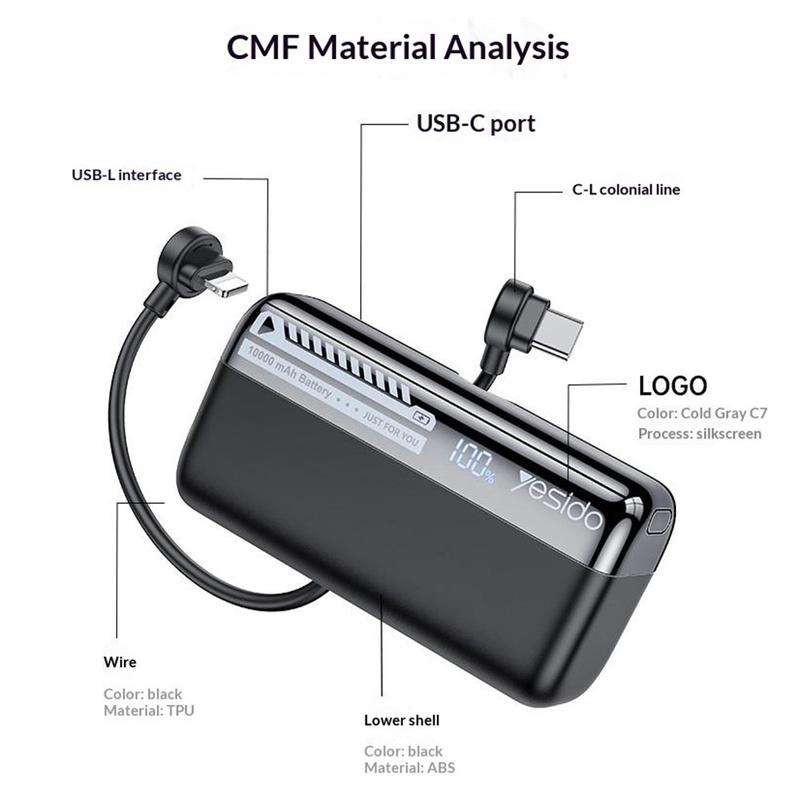 Le YESIDO YP99 comprend un câble USB-C vers Lightning intégré, vous évitant ainsi d'avoir à emporter un câble séparé. Le câble intégré de type lanière est doté d'une fiche pivotante à 90 degrés et peut également servir de support pour votre téléphone, vous permettant de le consulter en mode mains libres pendant la recharge. Cela rend cette batterie externe particulièrement pratique pour les trajets quotidiens, les voyages ou l'utilisation quotidienne, lorsque vous souhaitez limiter au maximum le nombre d'accessoires à emporter.