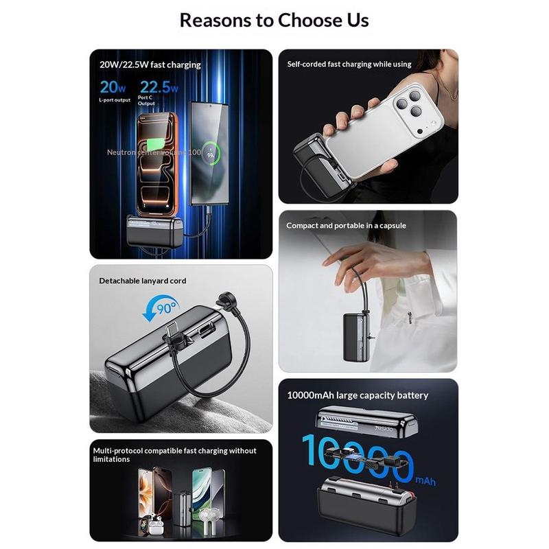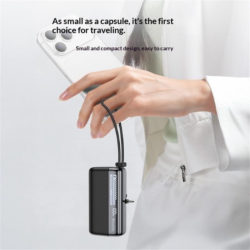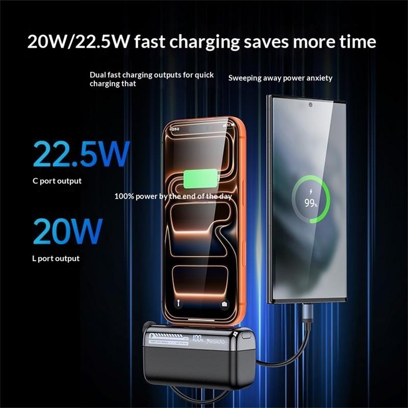Le YESIDO YP99 est un excellent choix pour tous ceux qui recherchent une batterie externe compacte offrant une recharge rapide, un câble intégré et un design plus adapté aux déplacements. Il réduit le besoin de transporter des accessoires supplémentaires, offre une recharge rapide pratique pour les appareils compatibles et comprend un affichage de l'état de la batterie ainsi que des protections de sécurité pour une utilisation quotidienne plus facile. Cela en fait un excellent choix pour les trajets quotidiens, les voyages, le bureau et comme source d'alimentation de secours en général.