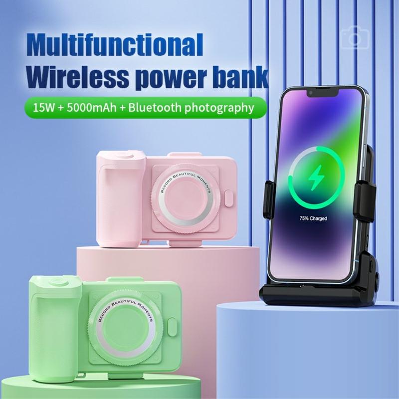 Le YR-1 3-in-1 Wireless Power Bank est un appareil polyvalent qui combine le chargement sans fil, un support de téléphone et un obturateur d'appareil photo Bluetooth. Il est doté d'une batterie de 5000mAh, d'une charge rapide sans fil de 15W et d'un clip de téléphone portable à verrouillage mécanique pour des prises de vue stables. Compatible avec divers appareils, il comprend des adaptateurs magnétiques Type-C et Micro USB pour les téléphones dépourvus de la fonctionnalité de charge sans fil.