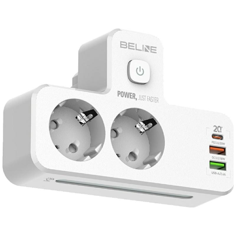 Élevez votre jeu de charge avec la barrette d'alimentation rétroéclairée de BELINE. Cet adaptateur mural compact combine deux prises secteur Schuko, trois ports USB (dont USB-C avec PD 3.0) et une veilleuse LED intégrée. Conçu pour les maisons et les bureaux modernes, il offre un moyen pratique d'alimenter et de charger plusieurs appareils sans encombrement.
