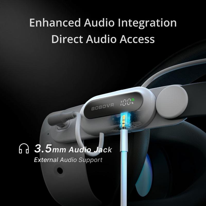 Améliorez votre expérience avec le Meta Quest 3/3S grâce à la sangle de tête BOBOVR E3 Pro, qui combine une autonomie de batterie étendue, un confort supérieur et une connectivité audio polyvalente pour une aventure de réalité virtuelle inégalée.