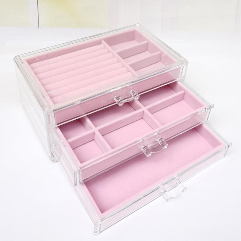 - Le couvercle en acrylique transparent permet de voir et de sélectionner rapidement les bijoux sans ouvrir la boîte.