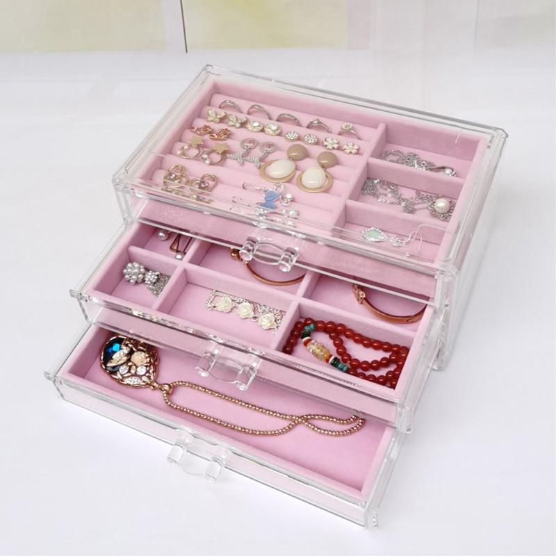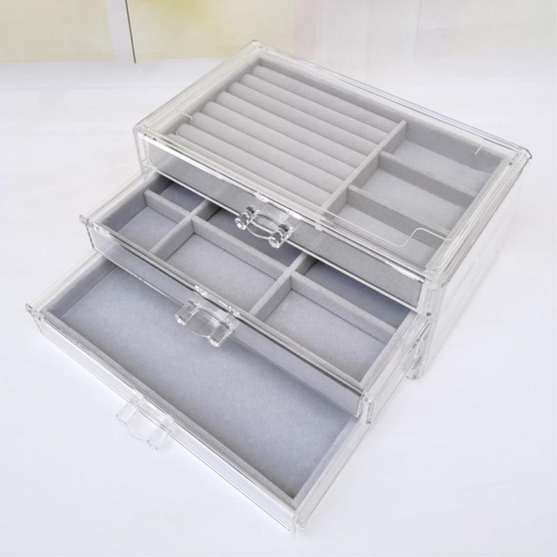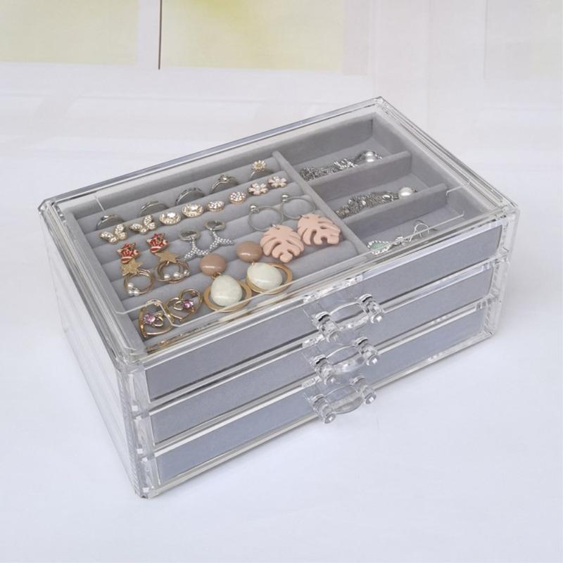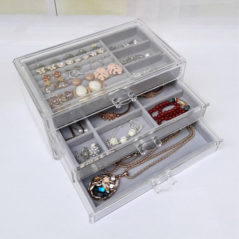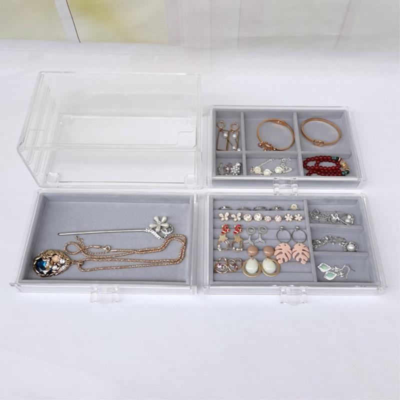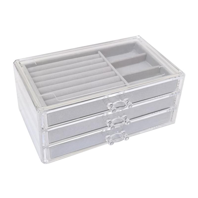 - Le couvercle en acrylique transparent permet de voir et de sélectionner rapidement les bijoux sans ouvrir la boîte.