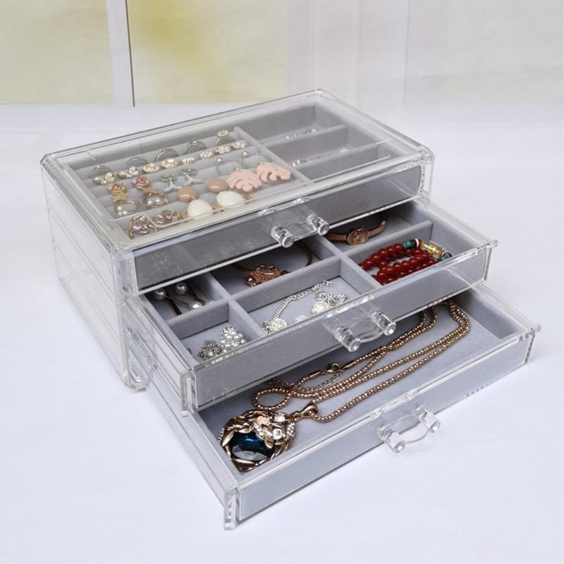 Boîte d'organisation de bijoux à 3 niveaux avec plateaux amovibles - Boîte de rangement en acrylique doublée de velours pour colliers, bagues, boucles d'oreilles et maquillage