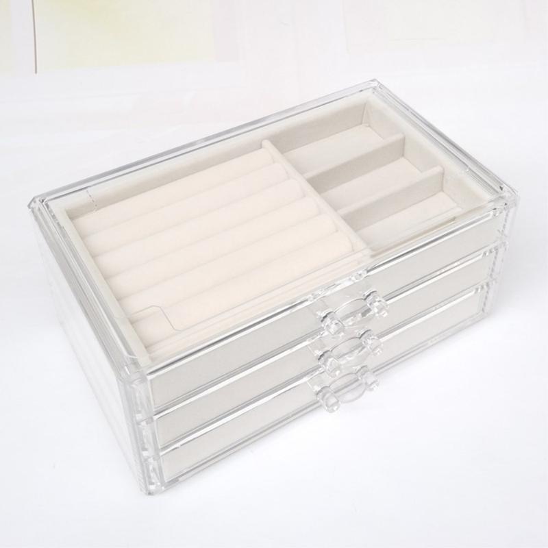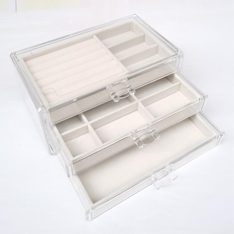 - Le couvercle en acrylique transparent permet de voir et de sélectionner rapidement les bijoux sans ouvrir la boîte.
