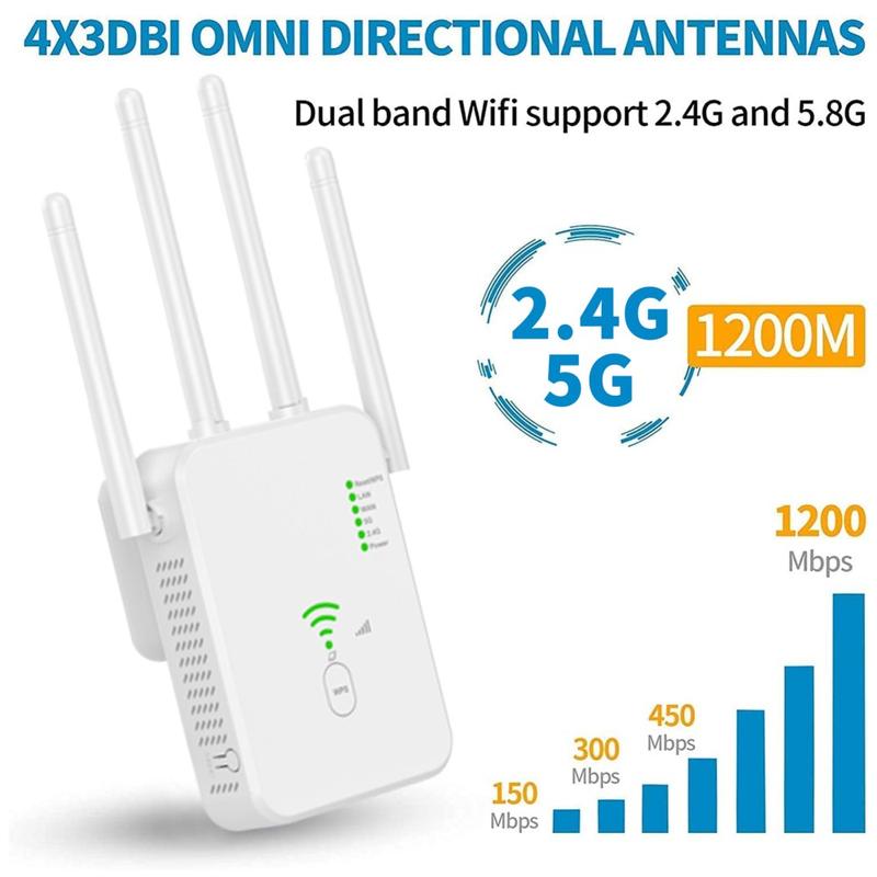 - Routeur et prolongateur WiFi bi-bande avec une vitesse allant jusqu'à 1200 Mbps