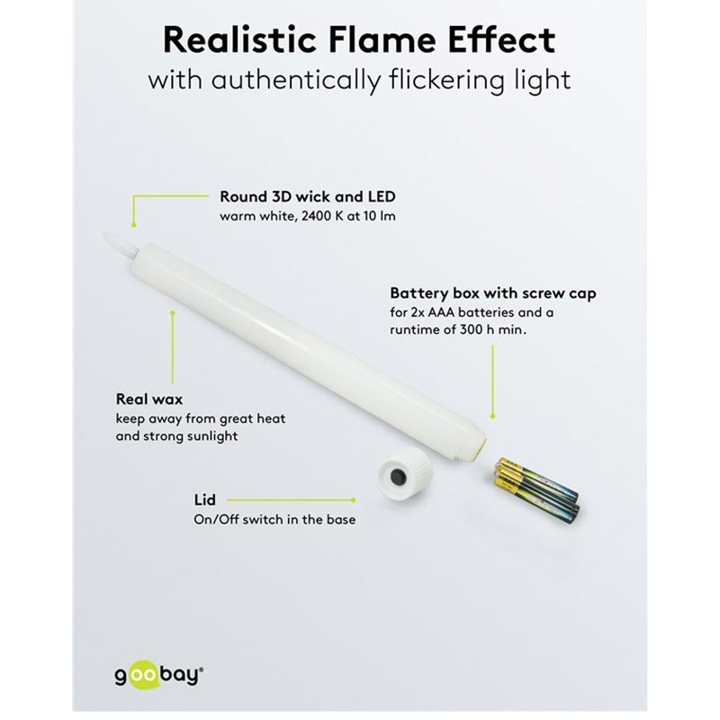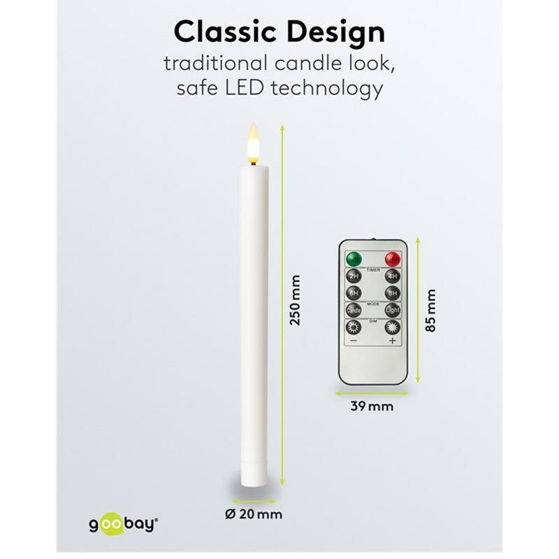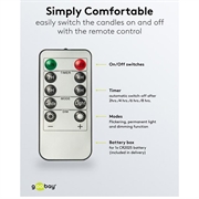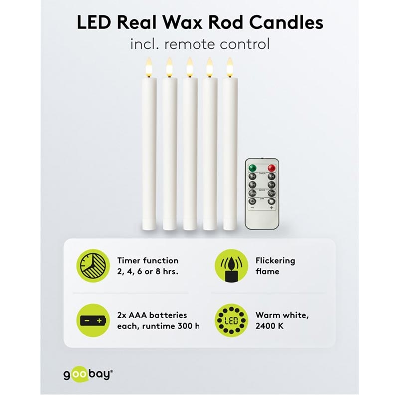 Goobay Set de 5 bougies LED en cire véritable - flamme 3D, télécommande, minuteur, dimmable, blanc chaud 2400 K