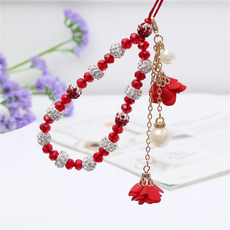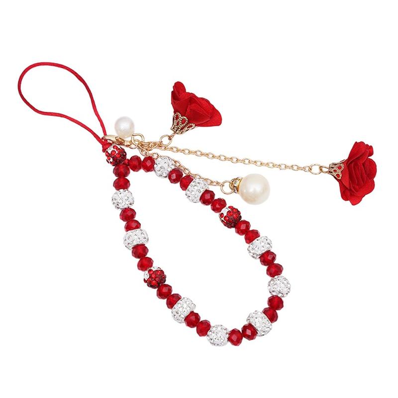 Lanière de téléphone en perles de cristal de 18,7 cm avec breloques en forme de rose - Accessoire pour téléphone portable avec dragonne et chaîne de poignet