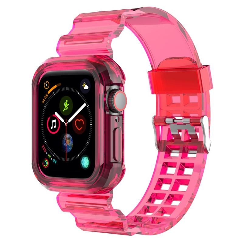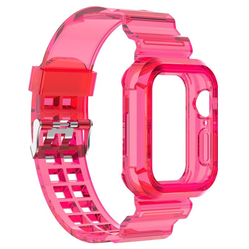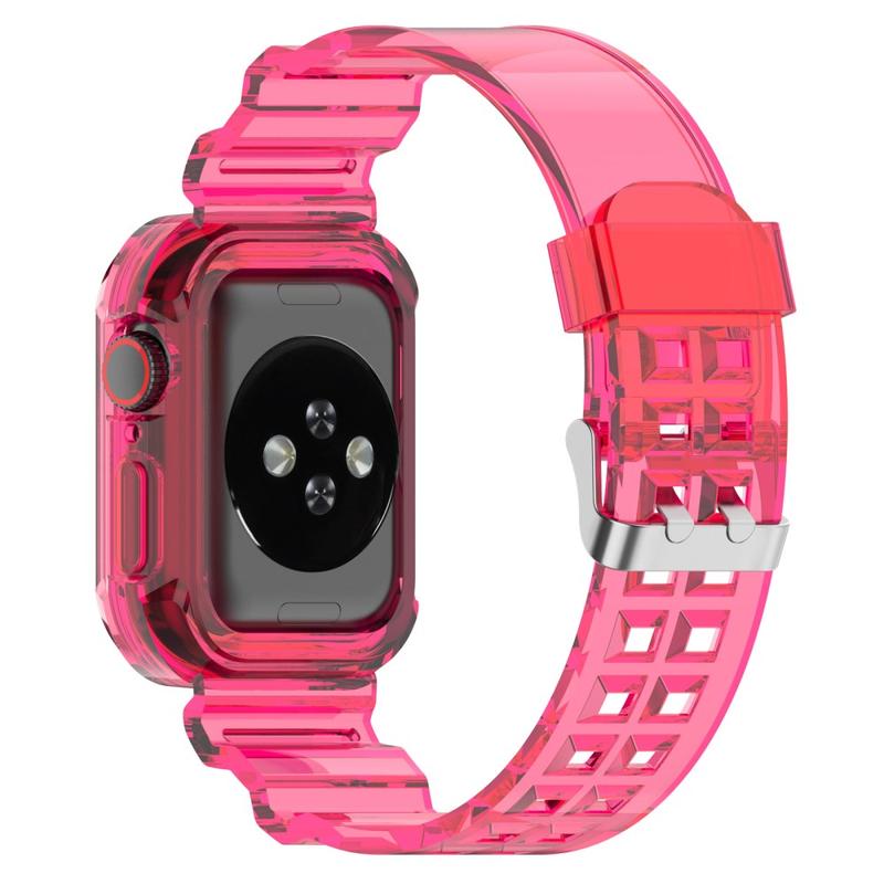 Bracelet en Silicone de Rechange Apple Watch Series 11/10 avec Cadre Intégré - 42mm - Rose Transparente