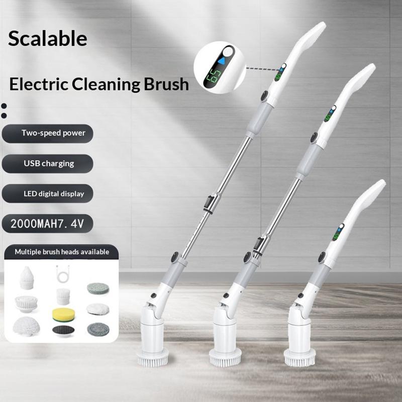 Brosse de nettoyage électrique K-130 avec 8 têtes de brosse - Brosseuse sans fil étanche à 2 vitesses pour la voiture, la cuisine et la salle de bains