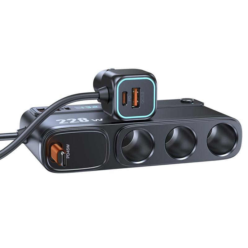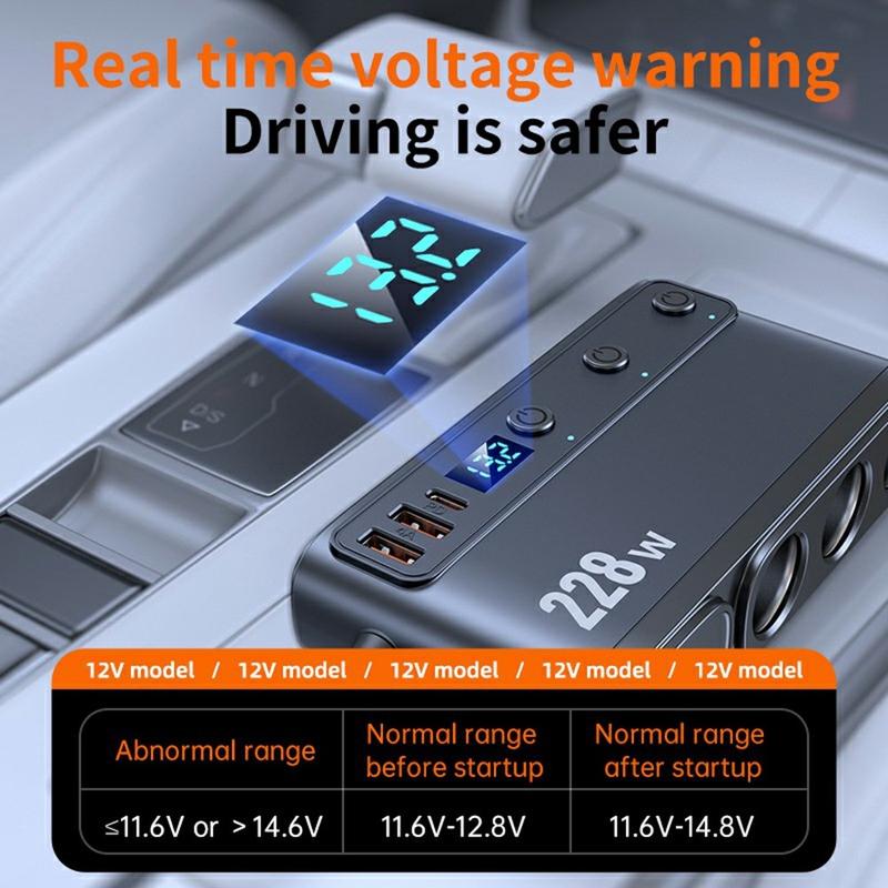 C35L Chargeur de voiture 3-en-1 à chargement rapide avec câble rétractable et affichage de la tension - 228W Multi-Port Cigarette Lighter Adapter