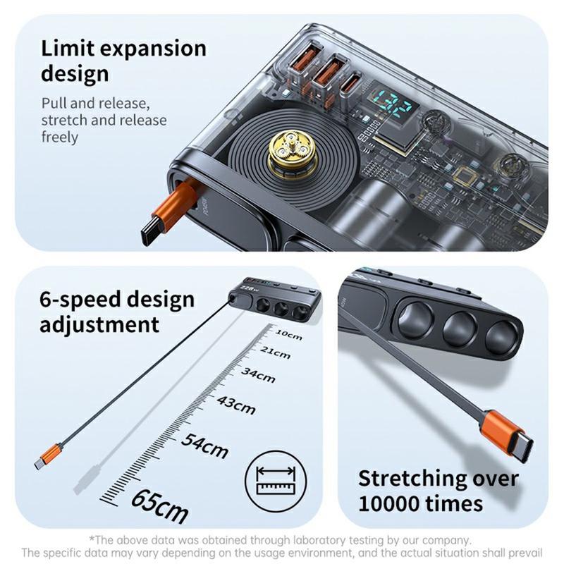 - Câble Type-C rétractable - Le câble intégré s'étend de 65 cm à 100 cm pour une charge flexible.