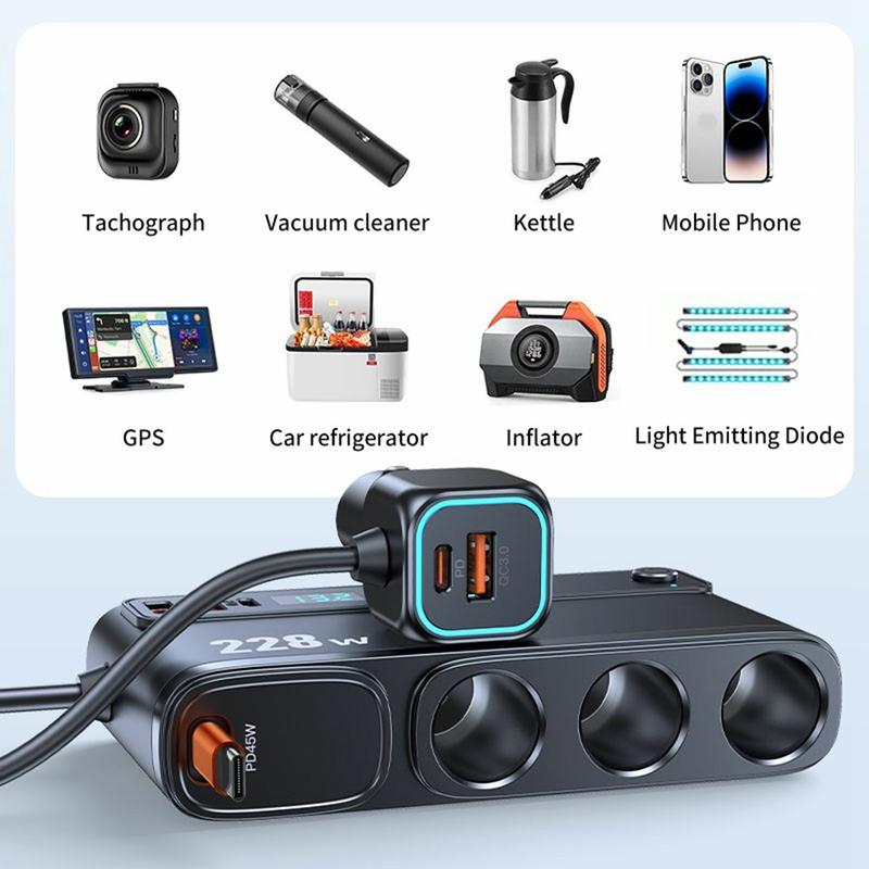 Parfait pour les conducteurs qui utilisent plusieurs appareils lors de leurs déplacements. Idéal pour les longs voyages, les trajets quotidiens et l'alimentation des smartphones et des accessoires embarqués tels que les pompes à air, les caméras de tableau de bord ou les mini-réfrigérateurs.