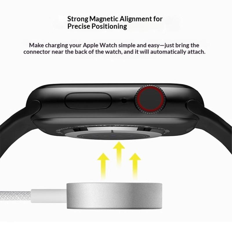 La conception de charge magnétique permet un alignement sans effort avec les appareils compatibles. Il suffit de placer votre Apple Watch sur le chargeur pour qu'il s'enclenche dans la bonne position, assurant un contact stable et un transfert d'énergie efficace.