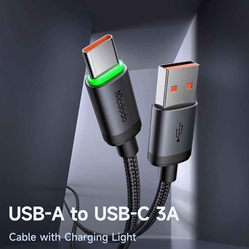 • Câble de recharge rapide Mcdodo CA-3960 USB-A vers USB-C 1m avec voyant LED de recharge - Recharge rapide QC 3 A et transfert de données 480 Mbps, tressé en nylon