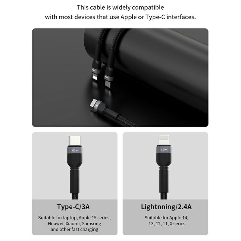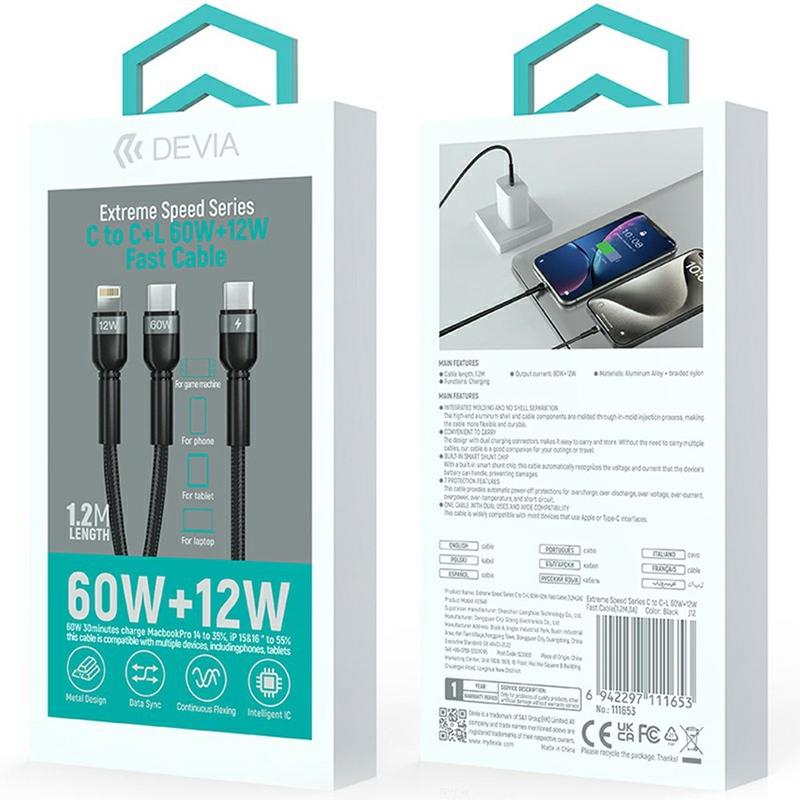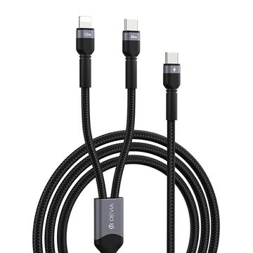 Câble USB-C 2 en 1 Extreme Speed Devia EC648 - USB-C vers USB-C 60 W PD et Lightning 12 W, nylon tressé, synchronisation des données, 1.2m