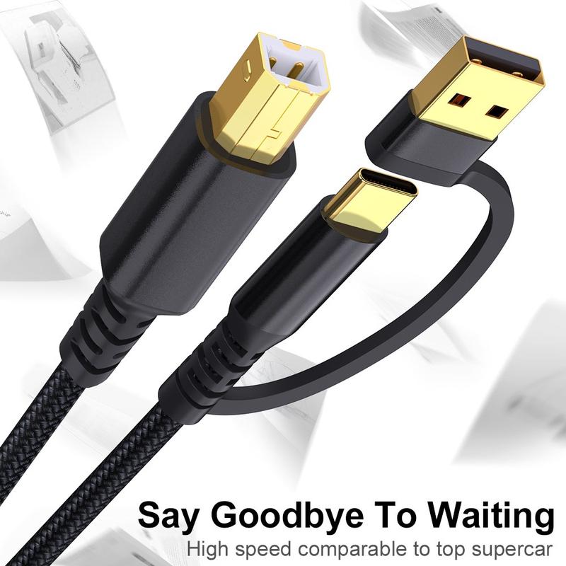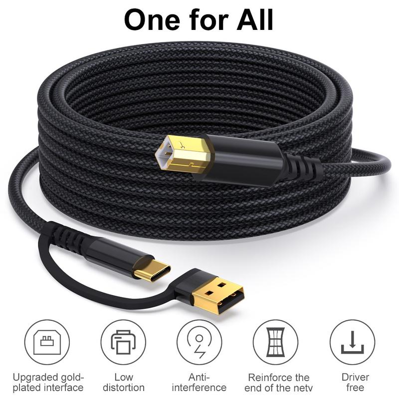 Câble d'imprimante 2-en-1 tressé USB-A / USB-C vers USB-B - 5m