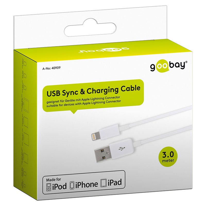 Câble Lightning Charge&Sync Goobay - 3m - Blanc
