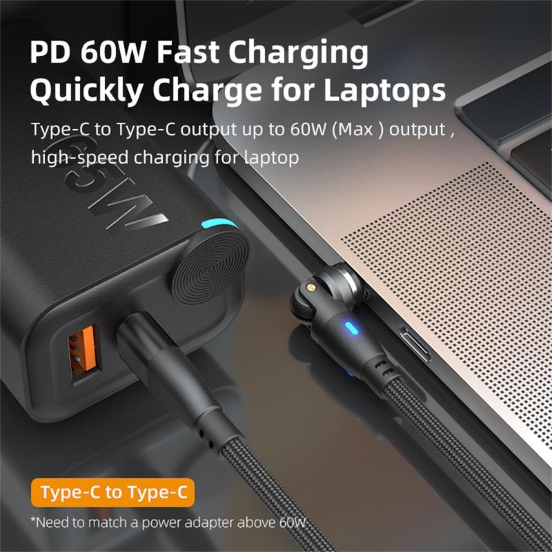 • Câble magnétique USB-C vers USB-C E9 1 m - Charge rapide PD 60 W et données USB 2.0, rotation à 540 degrés, tressage en nylon