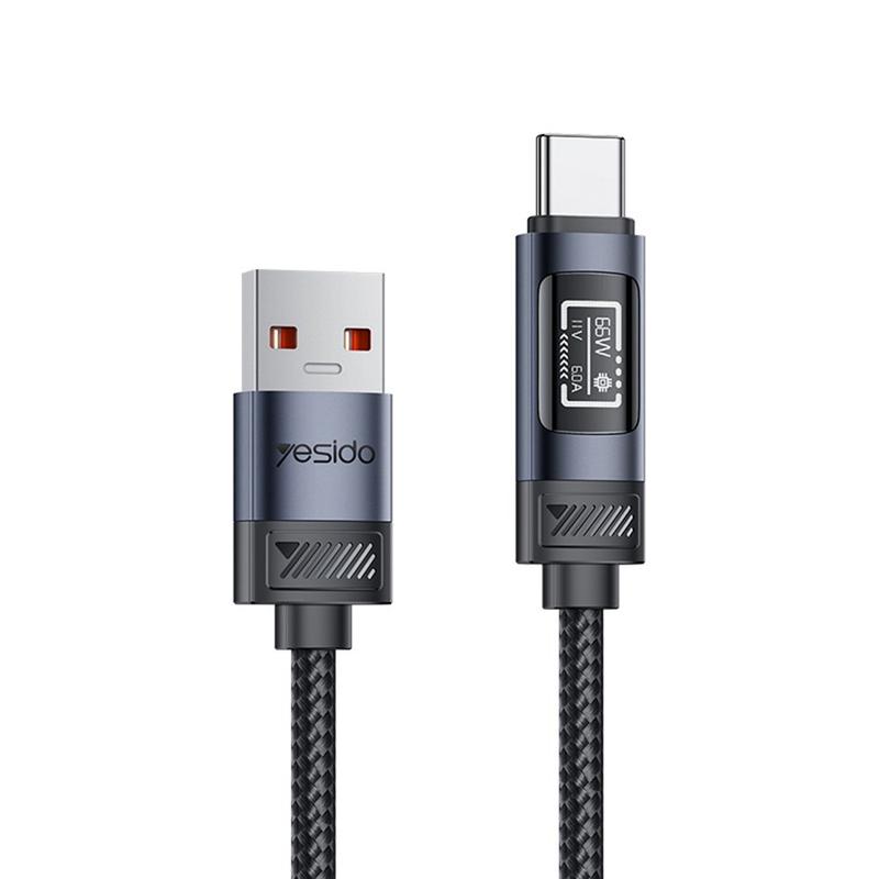 Câble USB-C Yesido CA138C 66W à chargement rapide avec affichage numérique - 1.2m - Noir