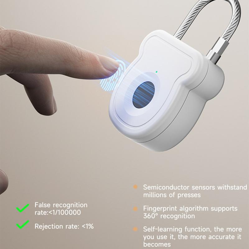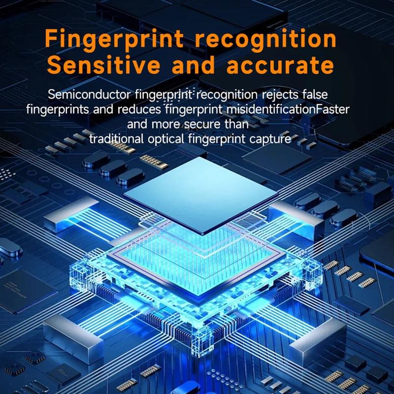 Ce cadenas intelligent utilise un capteur d'empreintes digitales à semi-conducteur capable de stocker jusqu'à 20 empreintes digitales. L'algorithme d'auto-apprentissage améliore la précision au fil du temps, garantissant un déverrouillage plus rapide et plus fiable à chaque utilisation.