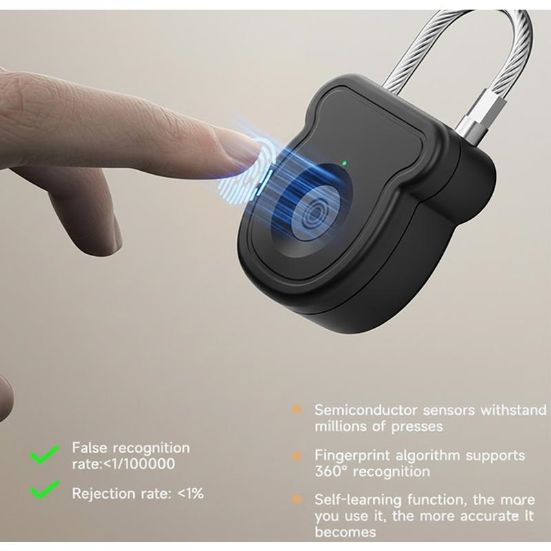 Ce cadenas intelligent utilise un capteur d'empreintes digitales à semi-conducteur capable de stocker jusqu'à 20 empreintes digitales. L'algorithme d'auto-apprentissage améliore la précision au fil du temps, garantissant un déverrouillage plus rapide et plus fiable à chaque utilisation.