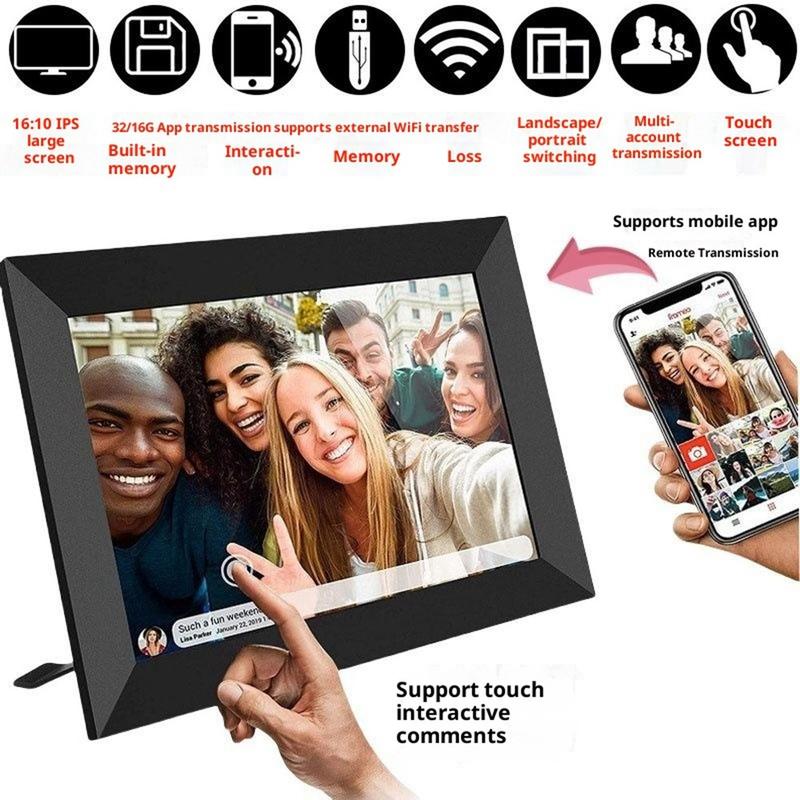 Cadre photo numérique 10.1" HD WiFi avec transfert photo/vidéo sans fil - Noir