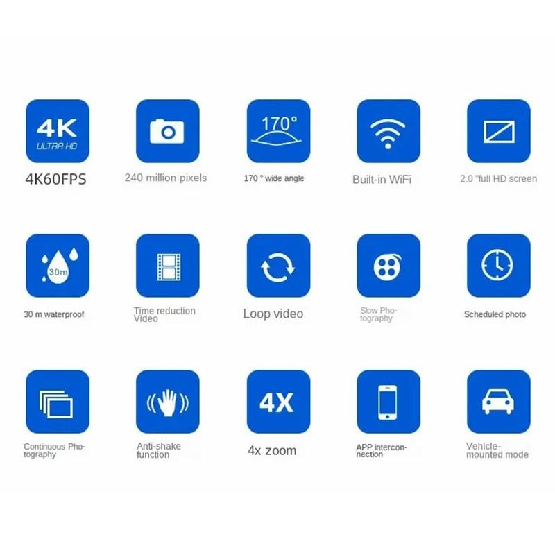 Capturez des images nettes et immersives où que vous soyez avec la caméra d'action F300AB-R 4K. Conçue pour les aventures en plein air et les enregistrements quotidiens, elle combine un angle de vision large de 170 degrés, une vidéo haute vitesse fluide et un écran tactile HD réactif de 2 pouces. Avec son WiFi intégré et son boîtier étanche robuste pouvant aller jusqu'à 30 m, elle est prête à l'emploi pour les voyages, les sports et l'exploration sous-marine.