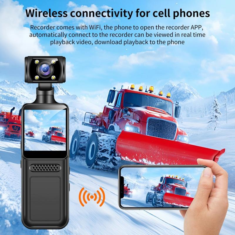 • Caméra d'action sportive 4K pour l'extérieur - Vision nocturne, anti-flou, caméra de poche WiFi avec lumière d'appoint LED et écran 1,3 pouce