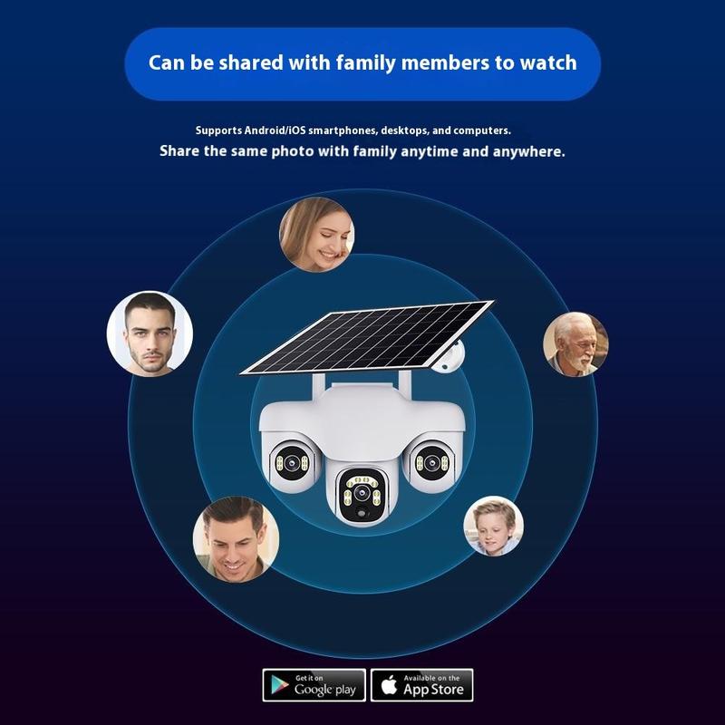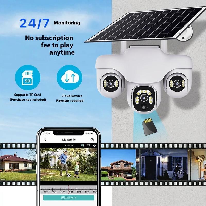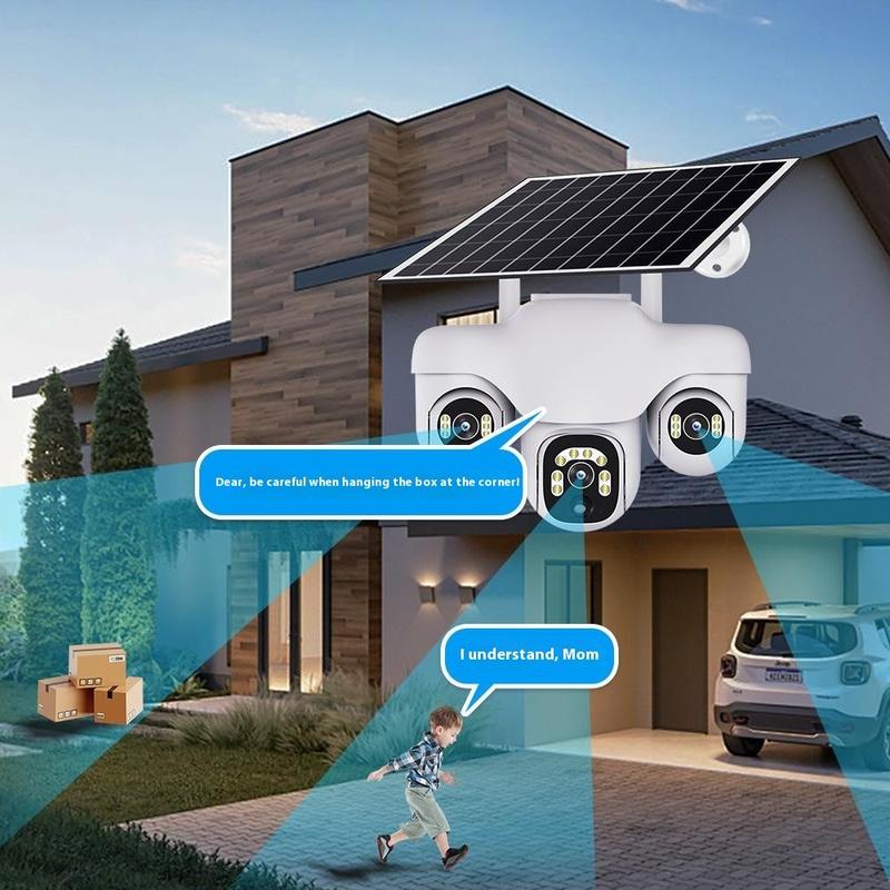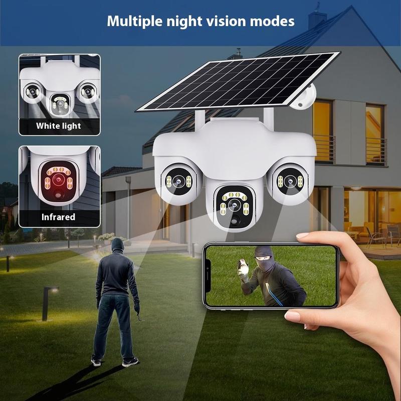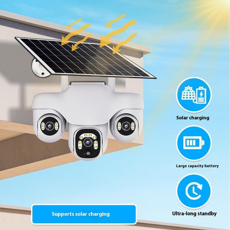 Caméra de sécurité PTZ VTS31 V380 à énergie solaire avec triple objectif - Caméra de surveillance WiFi d'extérieur avec détection de mouvement