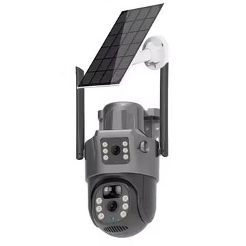 Caméra de sécurité extérieure solaire V380 4G - Caméra PTZ à double objectif 4 MP avec vision nocturne en couleur et détection de mouvement