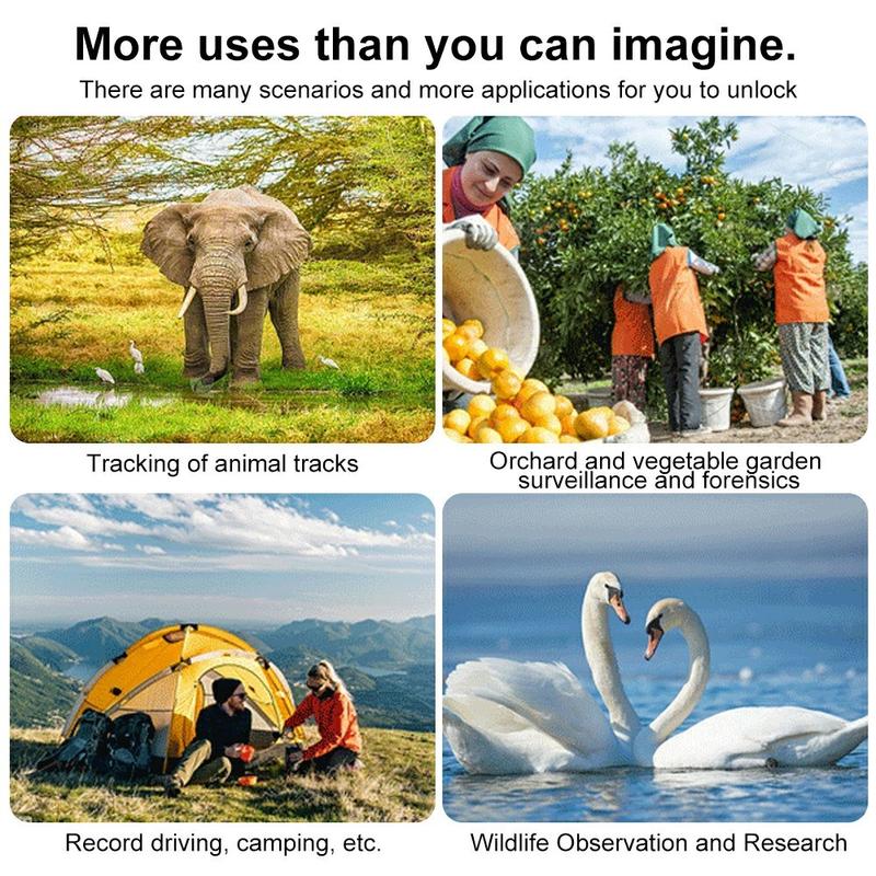 Déployez la caméra DL006 une seule fois et enregistrez des semaines durant des images nettes d'animaux sauvages ou de sécurité sans perturber la scène. Un capteur CMOS de 16 MP enregistre des vidéos de 1080 p, tandis que des LED infrarouges de 940 nm éclairent les sujets jusqu'à 10 m dans la nuit sans les effrayer. Le boîtier IP66 résiste à la pluie, à la poussière et à des températures allant de -20 °C à +60 °C. Un déclenchement rapide de 0,2 à 0,6 s et une prise de vue en rafale garantissent l'enregistrement de chaque mouvement sur une carte TF (jusqu'à 32 Go).