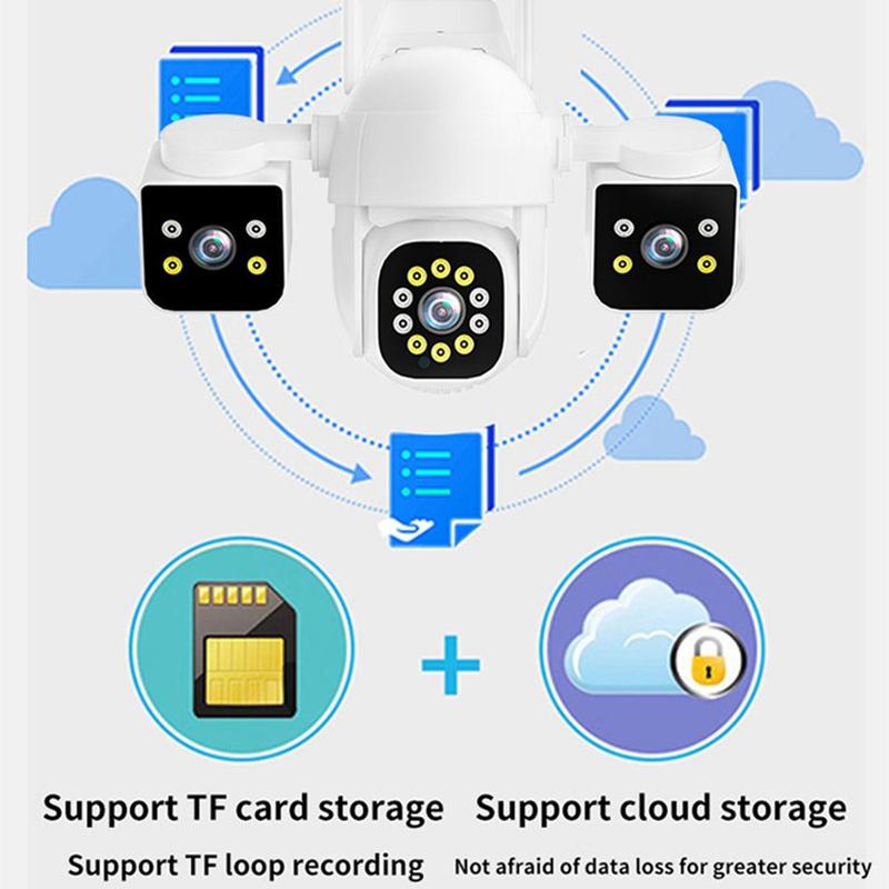 PC288-B3Y10-2MP Caméra de surveillance résistante à l'eau à triple objectif PTZ avec rotation panoramique, vision nocturne, carte mémoire 64GB, WiFi - EU Plug