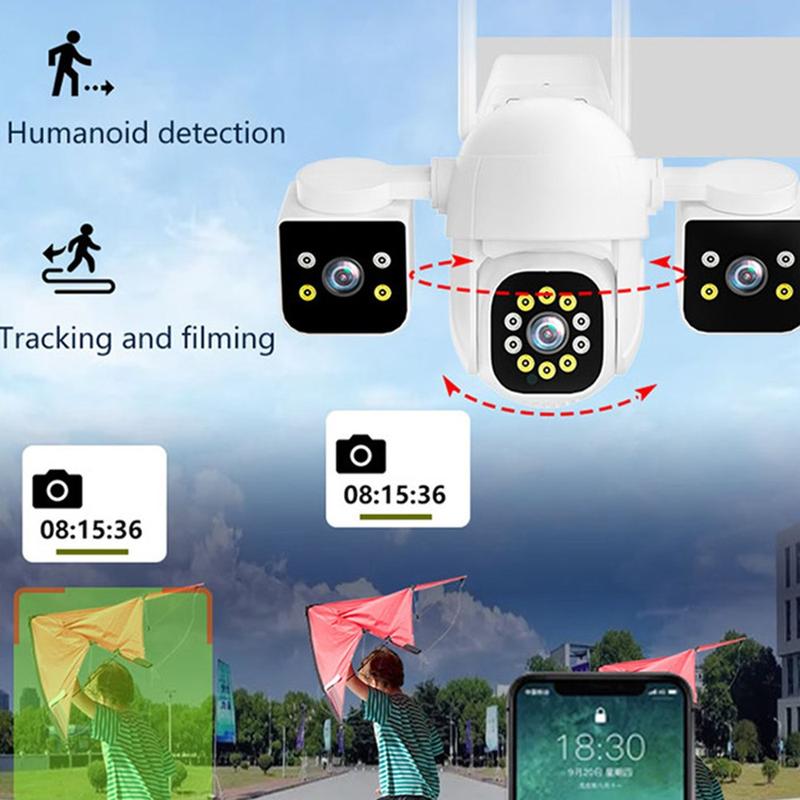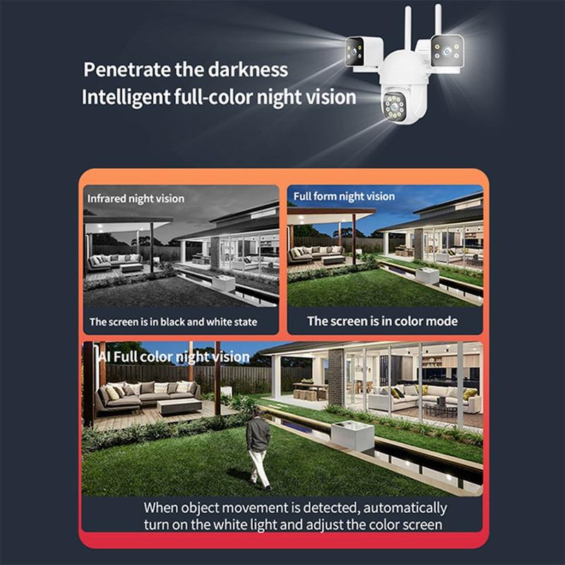 Protégez chaque recoin de votre propriété, de jour comme de nuit, grâce à cette caméra de sécurité étanche et dotée d'un système d'intelligence artificielle. Trois objectifs réglables indépendamment offrent une vue panoramique à 360°, tandis que le suivi intelligent et l'audio bidirectionnel vous permettent de rester connecté et de garder le contrôle où que vous soyez.