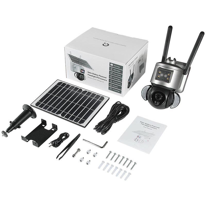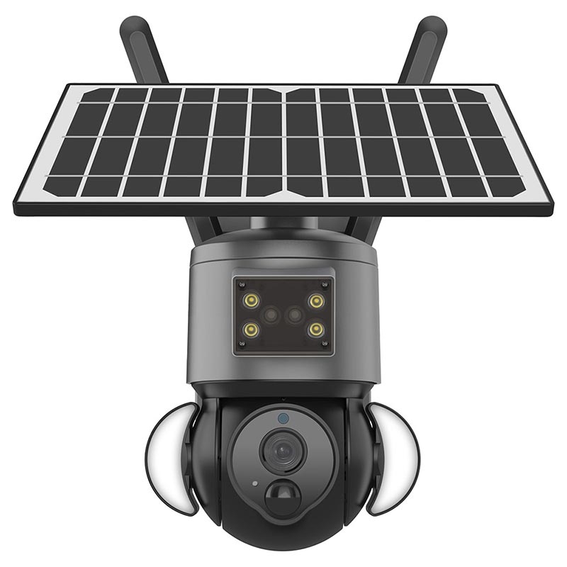 - Caméra domestique PTZ à énergie solaire avec alarme et projecteur