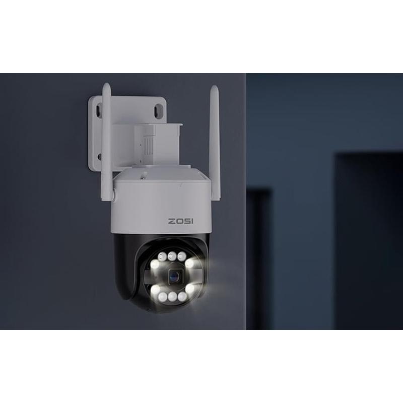 • Caméra IP Wi-Fi extérieure Zosi C296 8MP à double pivotement/inclinaison - 2880 1620, détection IA, audio bidirectionnel, H.265, IP66, IR 30 m + microSD 32 Go