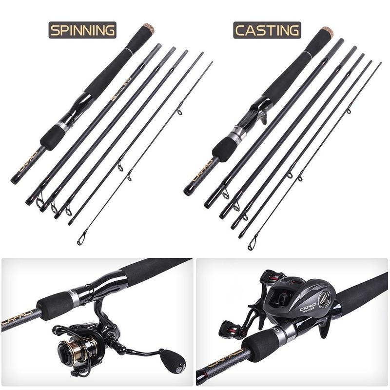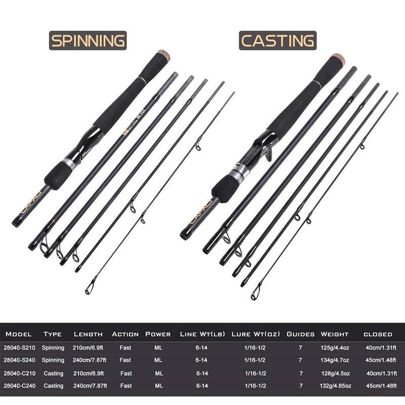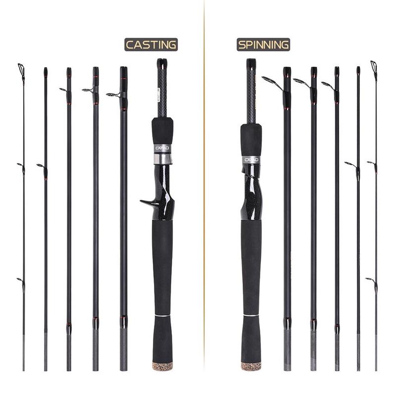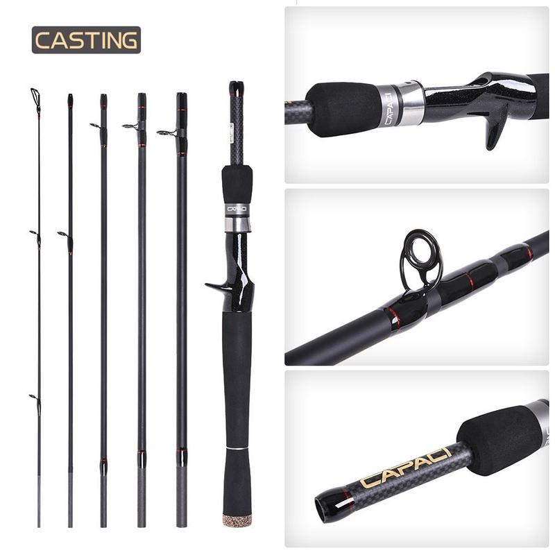 Capici Carbon Fiber Travel Casting Fishing Rod 2.1 m - 6-Section Lightweight Hand Pole
