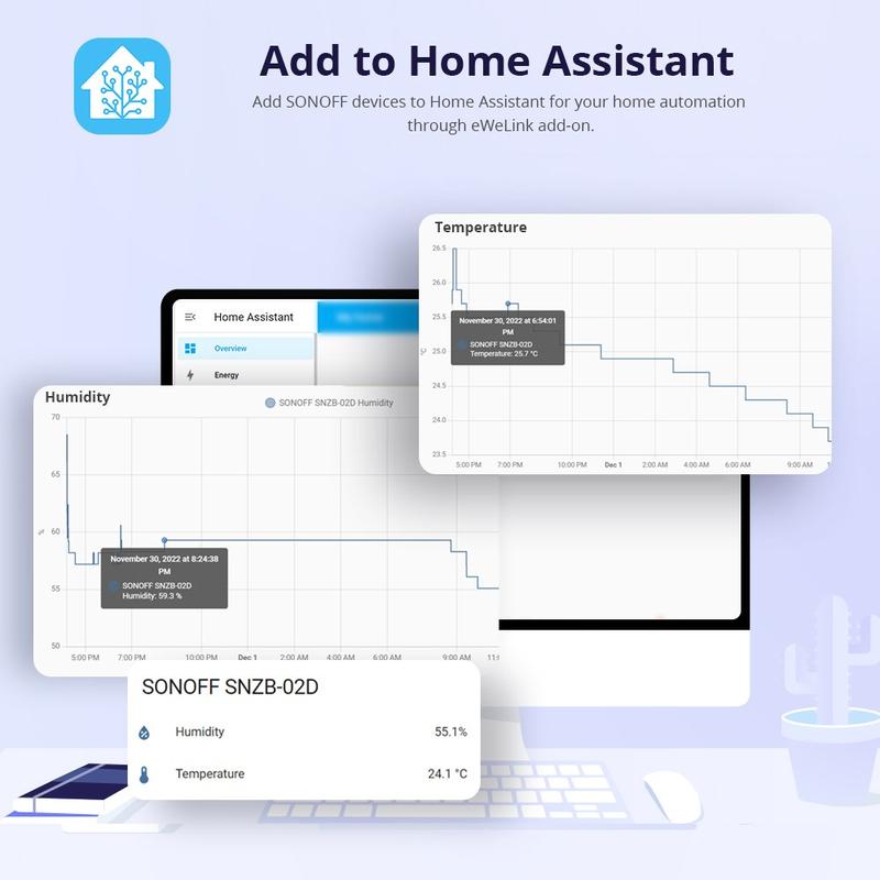 Le confort intérieur est fortement influencé par l'humidité : un air trop sec peut donner une sensation de fraîcheur et de moindre confort, tandis qu'une humidité élevée rend souvent les pièces plus chaudes et peut augmenter le risque de condensation. Disposer d'un capteur qui suit les tendances (et pas seulement les valeurs actuelles) vous aide à repérer des schémas tels que les pics d'humidité nocturnes, les besoins en ventilation ou la sécheresse liée au chauffage, afin que vous puissiez adapter vos habitudes ou l'automatisation de manière plus efficace.
