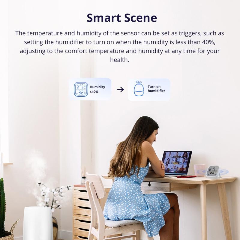 Contrôlez la température de votre intérieur grâce au SONOFF SNZB-02D. Ce capteur de température et d'humidité ZigBee 3.0 affiche les mesures en temps réel sur son grand écran LCD tout en envoyant des mises à jour à votre smartphone via l'application. Définissez votre plage de confort préférée et recevez des alertes instantanées lorsque les conditions changent, pour créer un environnement domestique plus sain et plus confortable.