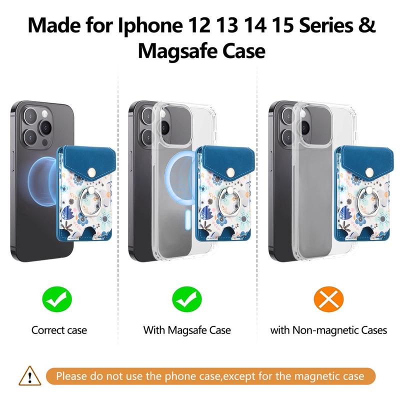 Ce porte-cartes est idéal pour les utilisateurs qui recherchent la praticité sans sacrifier le style. Il garde vos cartes en sécurité, améliore la manipulation du téléphone grâce au support d'anneau, et ajoute une commodité mains libres grâce à sa fonction kickstand. La fixation magnétique solide garantit une utilisation quotidienne en toute confiance, même en déplacement.