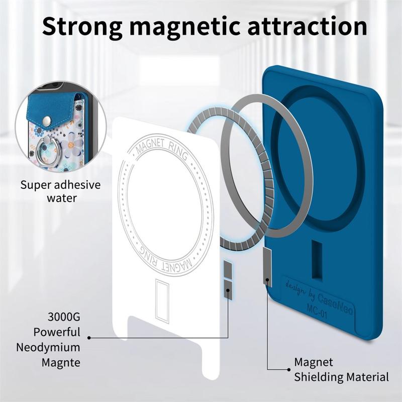 CaseNeo MC-W3 Porte-cartes magnétique avec anneau - Portefeuille à motifs compatible avec MagSafe
