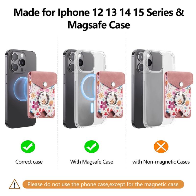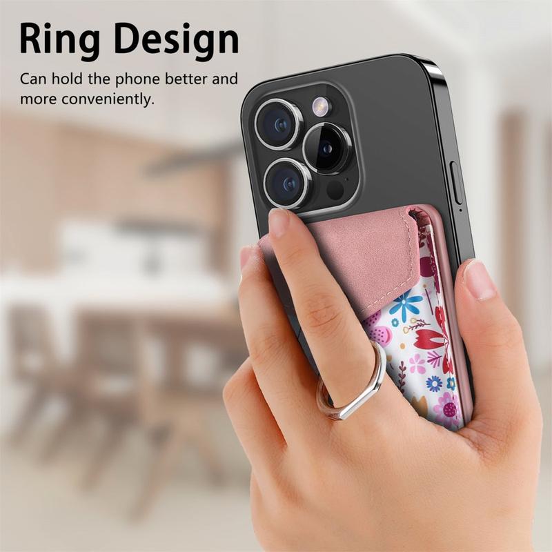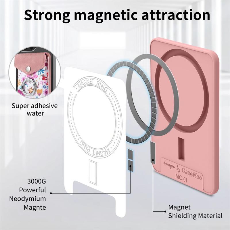 CaseNeo MC-W3 Porte-cartes magnétique avec anneau - Portefeuille à motifs compatible avec MagSafe