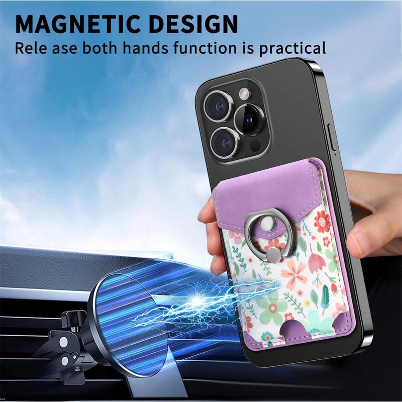 CaseNeo MC-W3 Porte-cartes magnétique avec anneau - Portefeuille à motifs compatible avec MagSafe