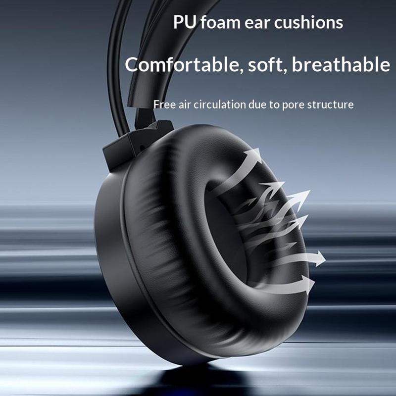 Le YESIDO EK06 a été conçu dans un souci de confort pour une utilisation prolongée. Le bandeau auto-ajustable utilise une conception de décompression micro-élastique qui s'adapte à différentes formes de tête, contribuant ainsi à réduire la pression lors de longues sessions de jeu. Les coussinets d'oreille en mousse PU souple, dotés d'une structure poreuse respirante, favorisent la circulation de l'air et améliorent le confort, rendant le casque plus agréable à porter pendant de longues périodes de jeu, de discussion ou de consommation de médias.