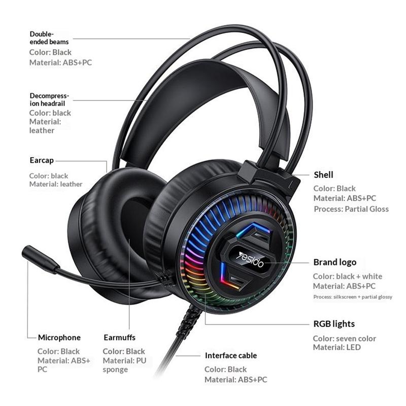 Casque gaming filaire RGB Yesido EK06 - Noir